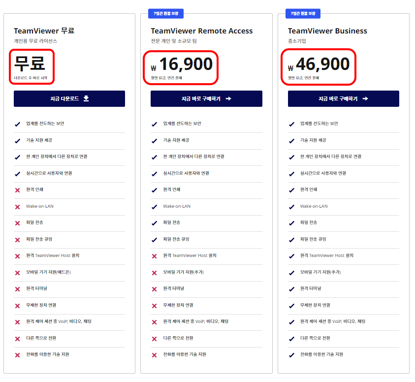 팀뷰어는 무료 버전도 제공되고 있습니다. 무료 버전으로도 기본적인 원격 제어 및 지원 기능을 사용할 수 있습니다. 다만 무료 버전에는 일부 제한 사항이 있습니다.